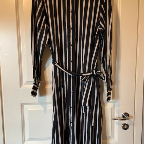 Vyötäröllä solmittava musta vyö. Takana napit. Vastas hyvin s kokoa.