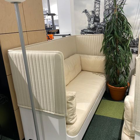 Blå Station Koja -sohva tarjoaa rauhallisen paikan istua ja hengähtää, jutella kollegan kanssa tai vaikka puhua puheluita. Suojaisa ja ääntä vaimentava paikka seinäkkeillä vaikkapa aulaan tai avotoimistoon!