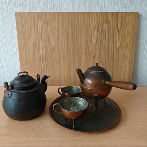Kuparinen sangallinen astia on esim suojaruukku. Korkeus on 17 cm ja leveys 16 cm , pohjasta 13 cm. Pinta käsitelty patinoituneen näköiseksi . Nouto Jyväskylän keskustasta.