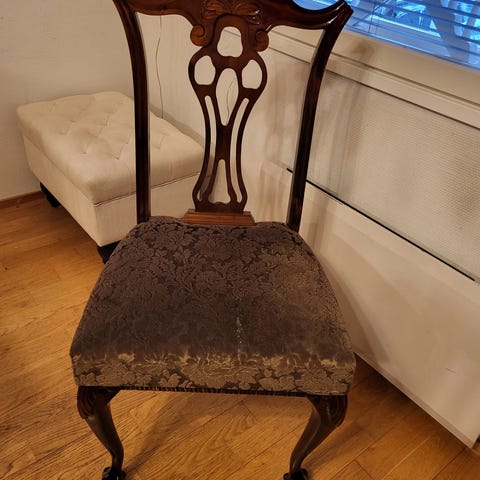 Tuolien istuinlevyt uusittu ja verhoiltu.