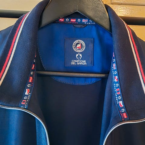Sininen hyväkuntoinen miesten paitatakki.