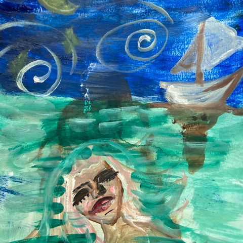 “Purjelaiva” A3 öljyväritaideteos paksulla öljyväripaperilla