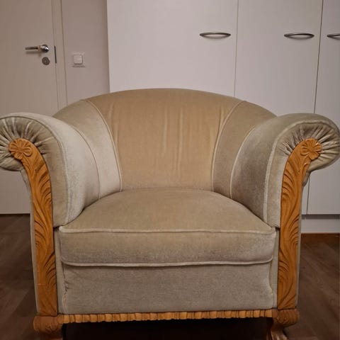Samettiset, kauniin väriset, virheettömässä kunnossa olevat tuolit. Malli tunnetaan myös Emma-tuoli. Väri on erittäin kaunis beige/haalean vaaleanpunainen.