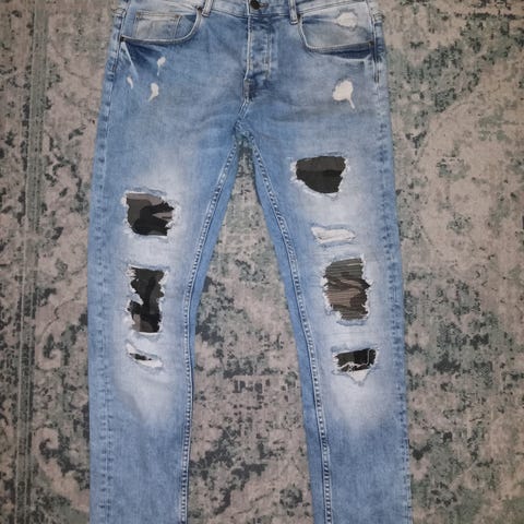 Harmaat miesten farkut, pidetty muutaman kerran, ei kulumia lahkeensuissa. Koko 42. Zara man.