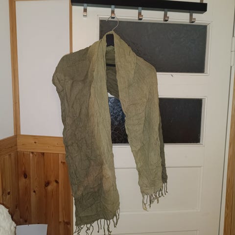 Myyntiin kerran keikalla käynyt kirkkaan vihreä huivi, pituutta n. 150cm.