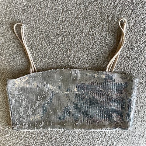 Koko S, joustava materiaali, mahtuvat noin S-M -kokoiselle. Näissä on sisävuori lahkeeseen asti, joten ovat mukavat päällä eivätkä paljetit raavi ihoa.