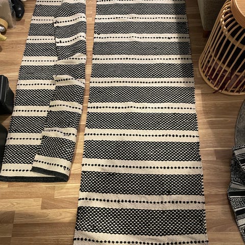 Vasemman puoleinen uudenveroinen, ollut vain hetken lattiassa. Oikenpuoleinen paljon käytetty ja kaipaisi pesua.
