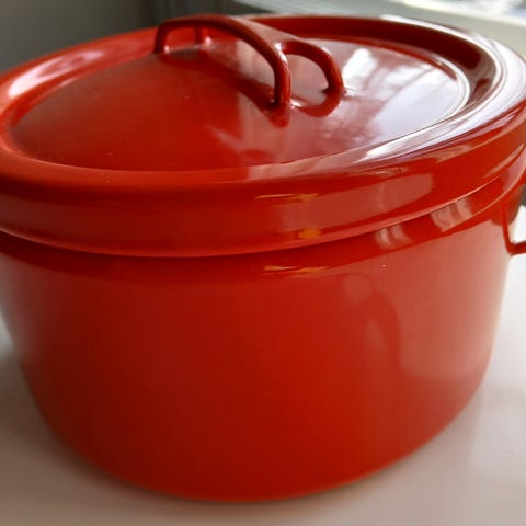 Myydään kuvassa näkyvä punainen Finel kattila ja siihen kansi.