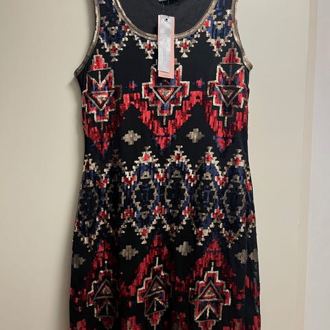 Musta paljettimekko (lyhyt, V-kaula-aukko) XS