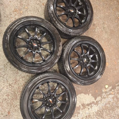 Myydään 3-osaiset SSR Vienna Kreis JDM vanteet kokoluokassa 17x7" ET22 ja 17x7,5" ET16. Vanteista löytyy 4x100 sekä 5x100 jaot, mutta menevät niin ikään epäkeskoilla myös 4x98, 5x98 ja 5x101,6 jne. Rakennettu näyttelykäyttöön, joten kunto pitkälle sen mukainen. Keskiöistä poistettu kokonaisuudessaan alkuperäiset hilseilevät kromit ja nämä sekä tynnyrit tärykiillotettu. Lisäksi kehäpultit ehostettu ja venttiilit, keskimerkit sekä kehämutterit vaihdettu kokonaan uusiin (vanhat osat saa mukaan). Päällä uudenkarheat 185/35 venykumit, joten pienellä pyyhkäisyllä valmis paketti sellaisenaan kesän tapahtumiin.