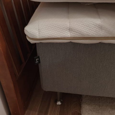 Irrallaan tarpeettomaksi jäänyt runkosängyn päätylevy. Korkeus 65 cm ja leveys 82 cm. Paksua puuta ja painava.