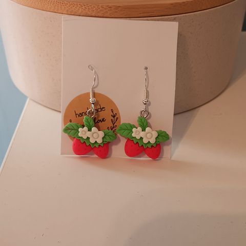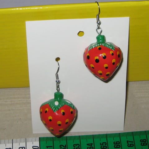 Myydään käsintehdyt mansikka nappi korvakorut. Ei sisällä nikkeliä.