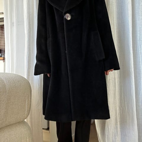 75% alpakka, 25% villa. Pituus 82cm, k-k 57cm. Ostajalle Toridillin kautta 190€
