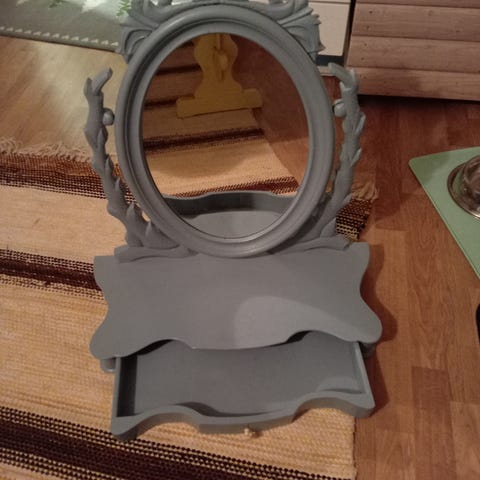 Massiivipuusta tehty piian peili. Peili on mennyt rikki, mutta sen voi helposti siihen leikata.