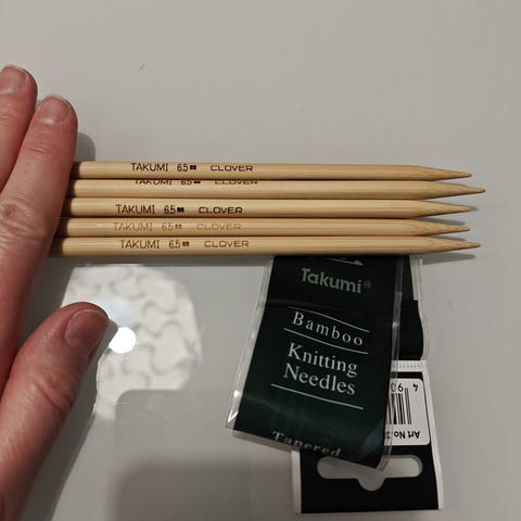 Villasukanpingottimet, ehkä kerran-pari testattu miltä sukan kuvio näyttää näihin pujotettuna, mutta voisi sanoa käyttämättömät, laatikossa olleet. Toisella puolen pari pientä pintanaarmua.