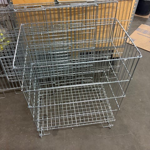Erä uusia vetokoreja myymäläkäytöön. Tumman harmaa ja vihreällä kahvalla oleva vetokori Prisman logolla. Ketterä, kevyt ja pinottava 43 litrainen vetokori joka sopii moneen myymälään. Korin paino on 1.87 kg/kpl ja kantavuus 30 kg.