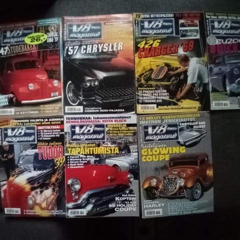 Myydään hyväkuntoiset V 8 - lehdet. Kaikissa keskiaukeamakuva paikallaan.