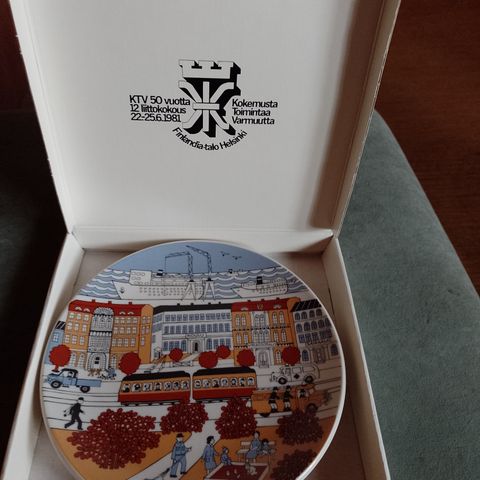 Arabia KTV lautanen halk.20cm. Valm.1981. Koristeen suunn.Raija Uosikkinen. Tuotantomäärä 3000 kpl.