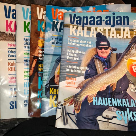 Kalastuksen harrastajille tai aloittajille hyvää informaatiota, joka ei vanhene. Yksi vuosikerta 5 euroa, kaikki kolme 22/23/24 vuosikertaa yhteensä 10 euroa.