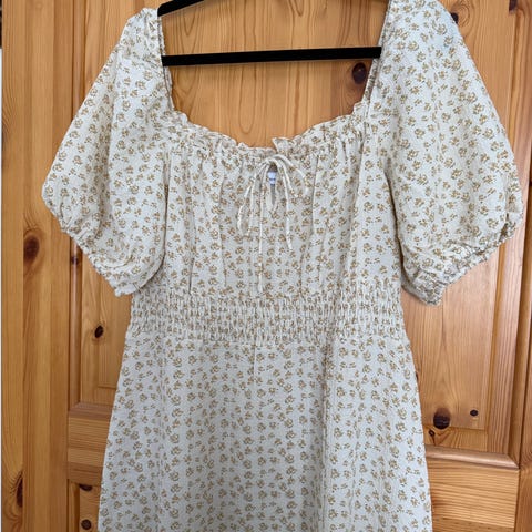Ellos mekko unikko kukkakuviolla. Koko 52. Kainalo-kainalo selästä mitattuna n. 68 cm. 100 % viskoosi. Jäänyt käyttämättä.