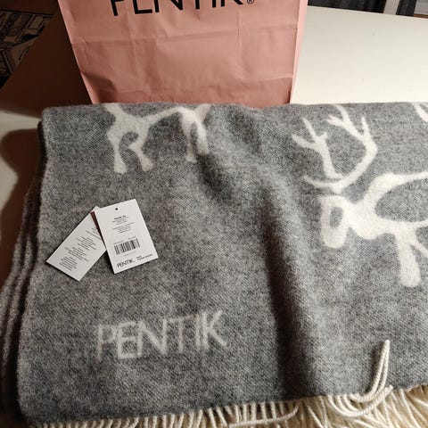 Myydään Pentik Saaga torkkupeitto. Värinä harmaa valkoinen.
