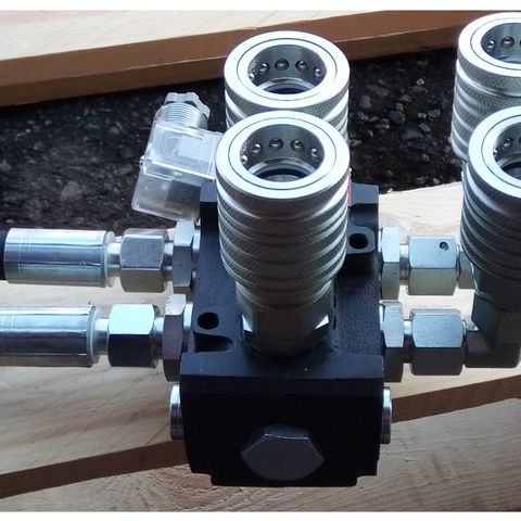 Solenoiditoimisen 6-tiejakoventtiilin avulla pystyt lisäämään kaksitoimisen hydrauliikkaventtiilin käyttöominaisuuksia siten, että yhtä karaa voit nappia painamalla käyttää kahteen eri tarkoitukseen Esim. Paalipihdit, lakaisukone jne.