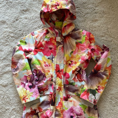 Hyvässä kunnossa oleva pusakkamallinen välikausitakki. Skeittikuosi, ehjä. Pari pientä ikilika tahraa tarttunut mukaan matkan varrella.