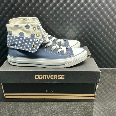 Conversen tennarit koko 5, joka vastaa kokoa 38, mutta todella kapea malli. Kerran käytetty ulkona, ei mitään kulumaa. Kapean mallin vuoksi jäänyt käyttämättä. Sisältää keltaiset ja punaiset nauhat. Nouto Käpylä, käteinen.