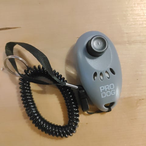 Koiran (tai muun lemmikin?) kouluttamiseen avuksi naksutin / klikkeri / napukka / klikkaaja, tai mikä tämmöinen nyt sitten on.
