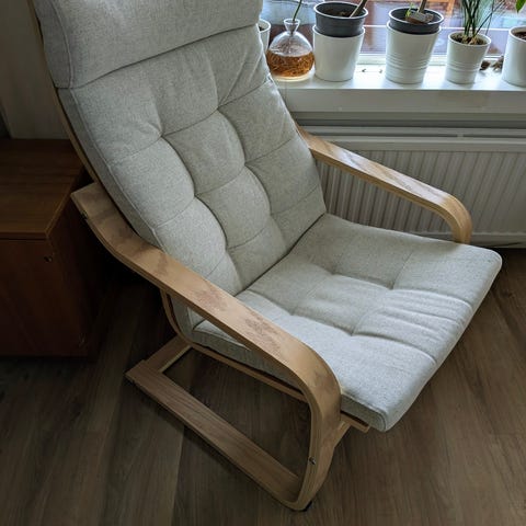 The armchair is in perfect condition. It has been cleaned, disinfected, and refurbished.