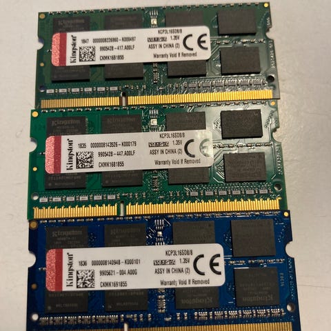 Mukaan myös 1GB Registered ECC Kingston 1kpl (kaikki muut ovat unbuffered) sekä 1GB Apacer (ei kuvassa), tässä on ilmeisesti jokin bitti rikki, kun ei mene Memtest läpi. Muut on testattu toimiviksi.