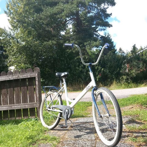 Noin yhdeksän (9) vuotta vanha, suhtkoht hyvässä kunnossa oleva pyörä. Rungossa on tussi jälkiä joita voin koittaa poistaa, jos näin pyydetään. Eturengas on myös hieman vääntynyt, mutta ei haittaa ajamista.