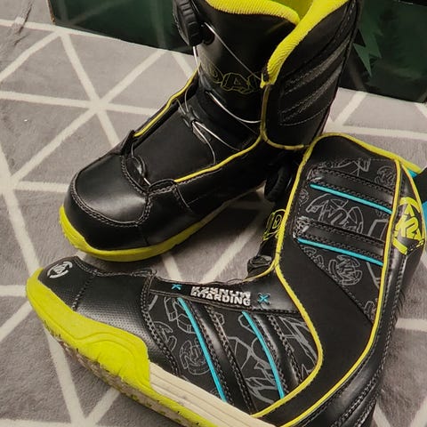 Hyvä kuntoiset monot Boa kiristyksellä, pari vuotta pölyttymässä olleet Riden lumilautamonot.