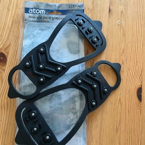 Osta etukäteen ensi talven liukkaille, metsiin ja järvien jäille kunnolla pitävät nastapohjat.
