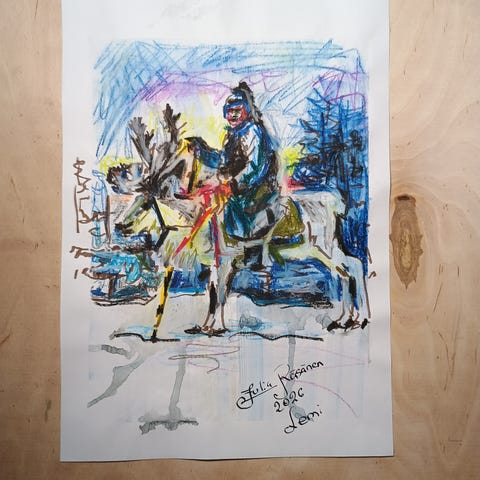 ”Pillipiipari” realismi akvarelli-piirros A3