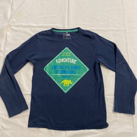 Siisti sinivalkoinen pitkähihainen paita koossa 134/140 cm.