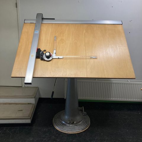 Todella kätevä kaksitasoinen piirustuspöytä, jota voidaan käyttää myös esimerkiksi tietokonepöytänä. Päällimmäisen pöytälevyn kulmaa voidaan säätää, jolloin alempaa pöytätasoa voidaan edelleen käyttää vaikkapa läppärin tasona. Pöydässä on myös reilusti tilaa erilaisille piirustustarvikkeille. Mukana myös jakkara!