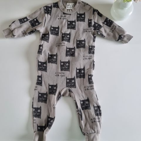 Mainion vohvelipintainen a friend of the night haalari/ jumpsuit, pohjaväri harmaa. Aavistuksen haalistunut polvista + yhden haalean tahran bongasin lahkeesta. Tuoksuton pesu, ei lemmikkejä.