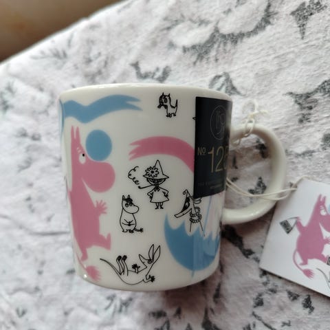 Käyttämätön ja tarrallinen Arabian Stockmann muumimuki.