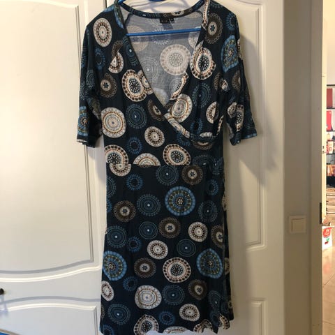 Kevyt, sinipohjainen ja siniläiskäinen tunika/mekko koko L.