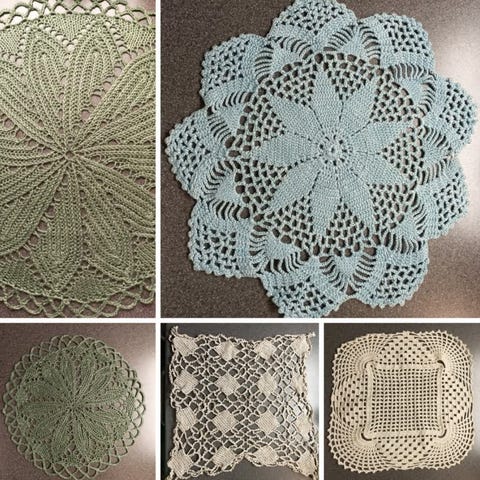 Hyvin hienokuntoiset pikkuliinat, jotka voi laittaa vaikkapa suojaruukkujen aluseksi tai piirongin päälle koristeeksi.