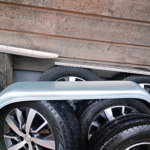 Myytävänä projektista yli jääneet peräkärryn osat.