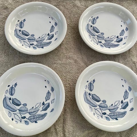 Raija Uosikkinen suunnitellut, tuotannossa 1954- 1960. Isot ruokalautaset , halkaisija 23,5 cm. Erittäin hyväkuntoiset. 20 e./ kpl