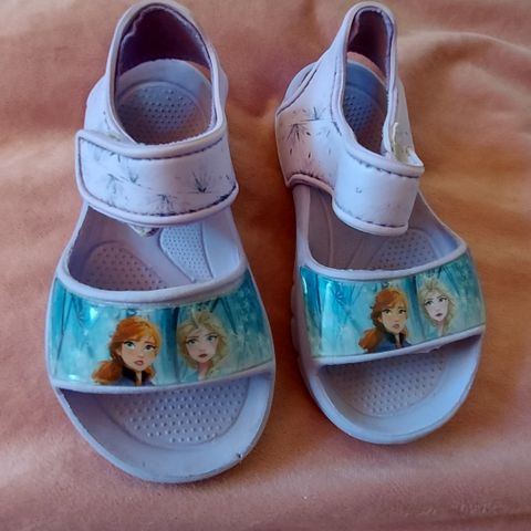 Lähes kuin uudet, kerran käytetyt varvassandaalit frozen anna ja elsa kuvalla.