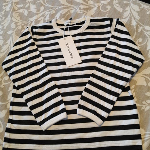 Myydään Marimekon valkoinen t-paita vaaleanpunaisella kukalla koossa 92/98. Uutena meille tullut ja kerran tai paristi käynyt päällä & pesty. Siistikuntoinen, kukan mustissa osissa pieni pesuhaitu, joka tuli heti ensipesussa.
