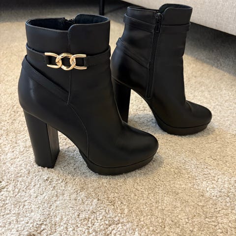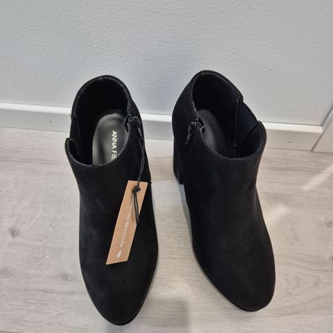 Anna Fieldin korolliset sandaalit nilkkaremmillä. Käyttämättömät, vain kokeiltu. Huom! Koko on 36 mutta vastaa oikeasti enemmän kokoa 37. Koron korkeus 6 cm. Pohjan pituus n. 23,5 cm, päkiän kohdalta pohjan leveys n. 8 cm. Materiaali mustaa keinonahkaa.
