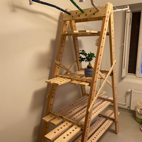 Vanha,tyylikäs ja toimiva koivuinenkukkateline
