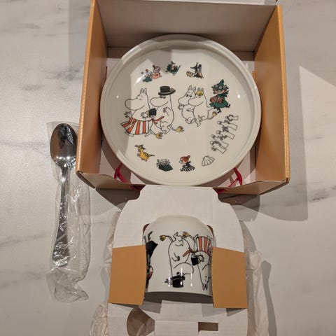 Keraaminen loistokuntoinen Muumi iloinen perhe astiasto 40€