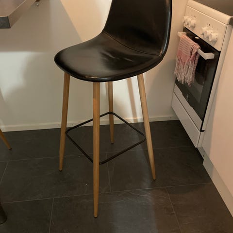 JONSTRUP Musta nahka baarituoli, hyvässä kunnossa.