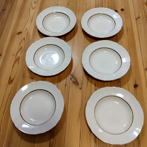 Hyväkuntoiset Arabian kultareuna lautaset, vanha tuotanto. Yhteishintaan 15 euroa.